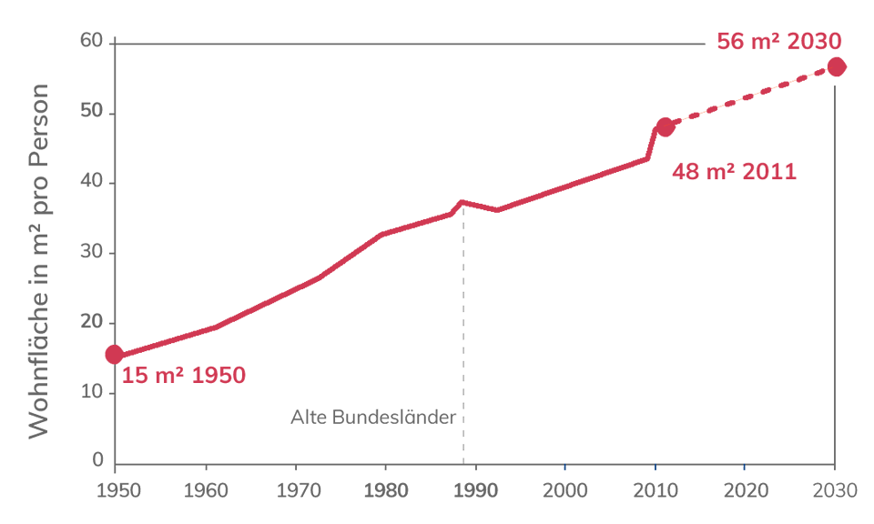 In der BRD ist die durchschnittliche Wohnfläche pro Person von 1945 bis 2010 von 15 auf 45 qm gestiegen. Die Tendenz ist weiter steigend. Das sieht man auch daran, dass in Bamberg ständig bebaut wird, ohne dass die Einwohnerzahl steigt . Der Bauflächenbedarf und Energiebedarf steigt ständig.